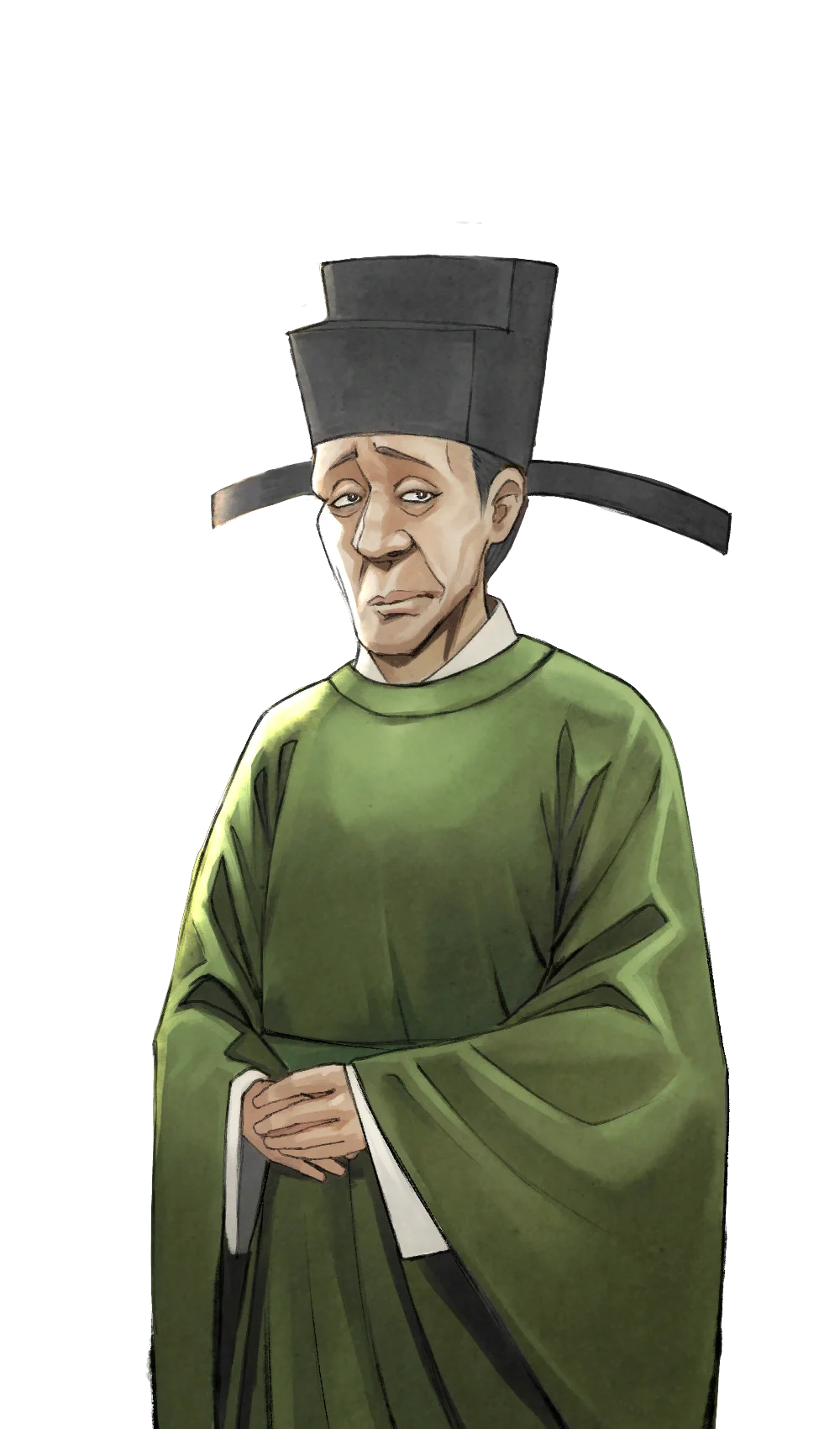 | 武林大會 | 岳州通判。 武林大會本未受邀請,至多協理,泥教現身時卻突然竄了出來,連聲喝止。 六品官,比宋悲、上官隼都差一級,職責更不在此,有越權之嫌,但他是京官中委派到岳州的,看不起江湖草莽,硬是仗著官威擠到人前,恫嚇上官遠。 跟武林人一起中了香毒,向溫夫人討饒。 |